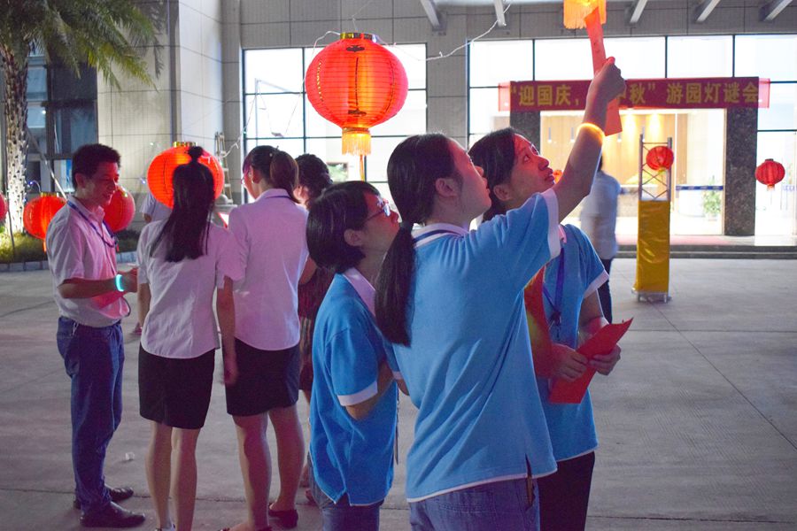 欢度国庆,喜迎中秋,为增强星空电竞人的凝聚力和归属感,营造喜庆而温馨的佳节气氛,惠州市星空电竞光电有限公司于9月27日晚开展了主题为“情系星空电竞,浓情中秋”的游园灯谜会活动。惠州市星空电竞光电全体职员一起尝美食、玩游戏、赢奖品,共同迎接中秋佳节。
