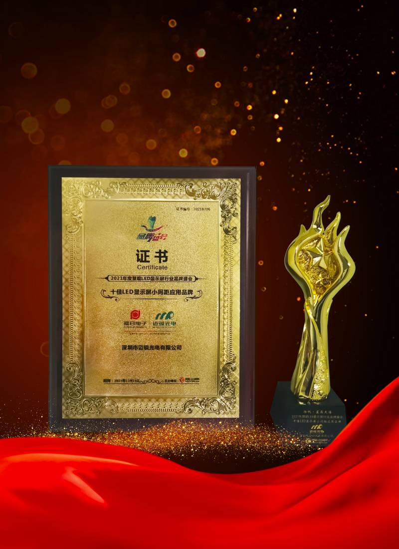12月23日,由慧聪LED屏网主办的“扬帆•星辰大海2021年度慧聪LED显示屏行业品牌盛会在深圳大梅沙京基洲际度假酒店隆重举行。会上,备受关注的“十佳LED小间距运用品牌”获奖名单揭晓,经过层层选拔,星空电竞光电荣获“十佳LED小间距运用品牌”奖项。
