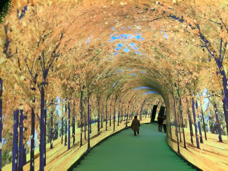 走进“时光隧道”,从腾飞的巨龙到盛开的牡丹,春日鸟语花香、夏日绿树成荫、秋季落英缤纷、冬季银装素裹,从四季变换到穿越神秘太空,各种奇幻场景的切换,震撼的视觉享受,仿佛身临其境,就像时光真的在穿越一样。