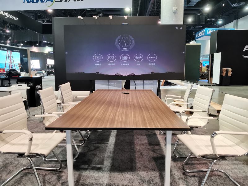 本次展会上,星空电竞光电智慧会议一体机凭借简洁大气的一体化外观设计赚足了眼球。产品内置顶级扬声设备和Android智能系统,投屏时支持四分屏同时显示,手机、平板、笔记本等设备内容一键传屏、数据对比清晰直观,让开会演示与信息交流的体验更逼真,刷新了现场参展观众对LED显示屏的认知。