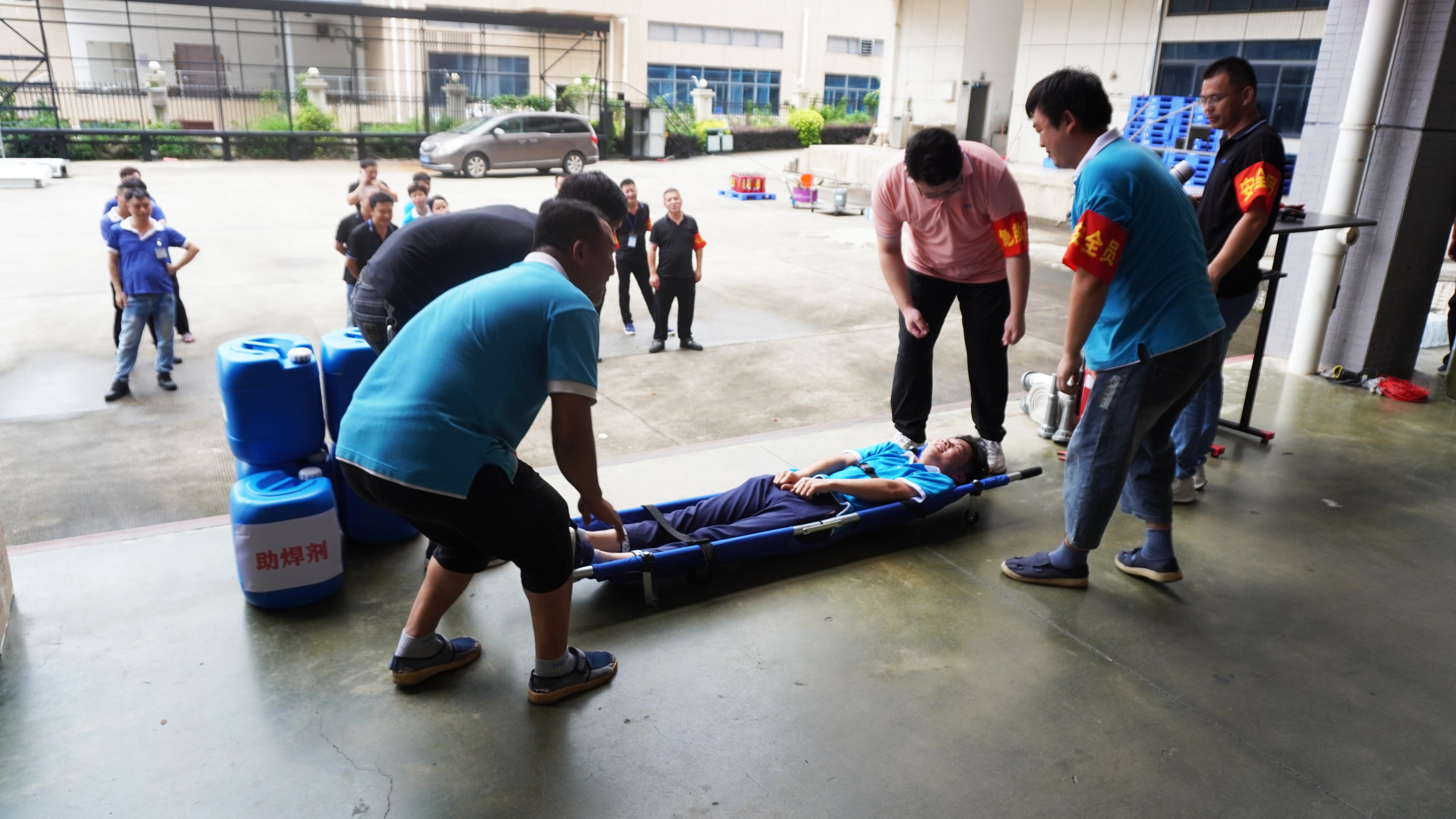在伤员搜救环节,救援小组行动迅捷,利用担架成功转移“伤员”并实施心肺复苏,生动检验了公司在紧急状态下的救援反应能力与生命守护链条。