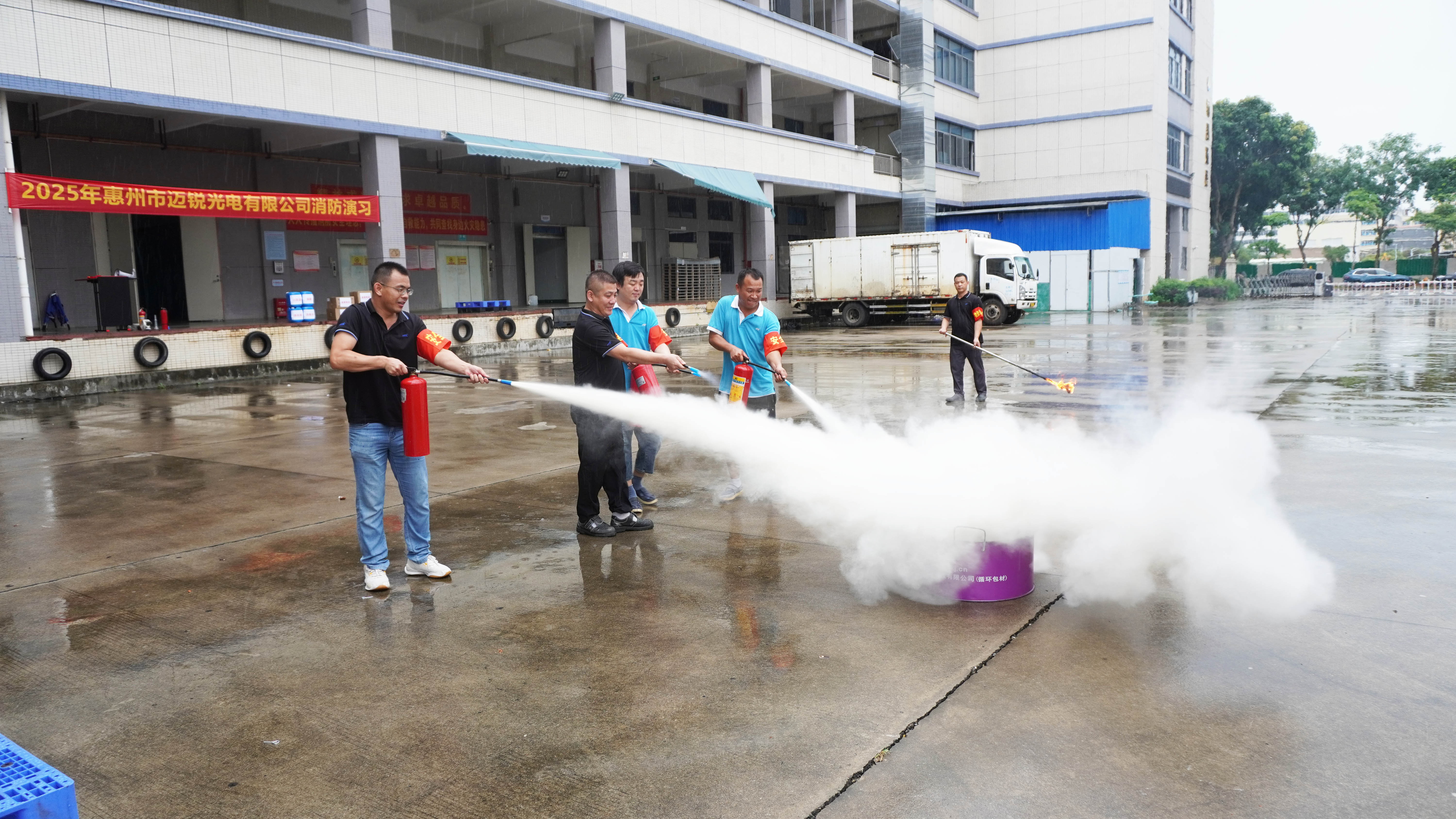 随后,员工们分组进行灭火器实操训练,从“提、拔、握、压”四步法到直面模拟火源喷射,干粉灭火器喷出的白色粉末扑向火舌,瞬间将危险化为无形。